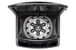 Trên máy giặt lồng đứng này, LG trang bị thêm công nghệ Turbo Drum tạo dòng nước xoáy nhờ mâm giặt và lồng giặt hoạt động ngược chiều giúp quần áo được giặt sạch hơn trông thấy.