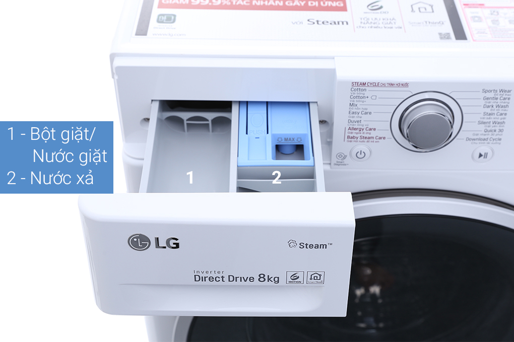 Được trang bị công nghệ giặt hơi nước Spa Steam, máy giặt sẽ giúp cho gia đình bạn tránh xa khỏi 99,9% vi khuẩn và tác nhân gây dị ứng có trên quần áo, góp phần bảo vệ an toàn sức khỏe cho cả gia đình.