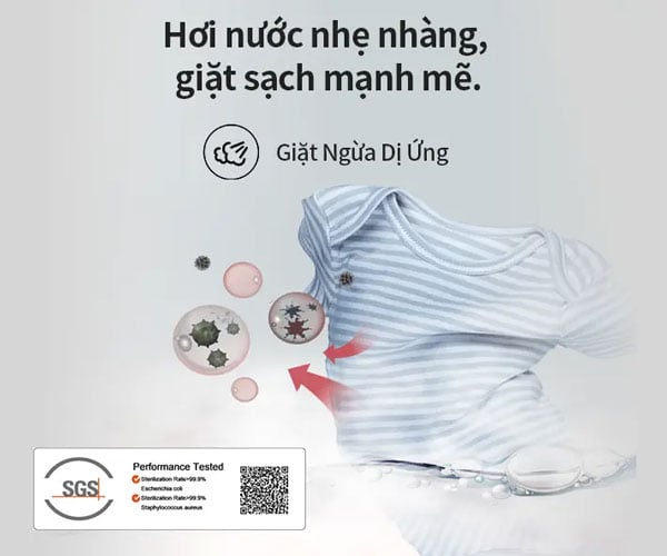 Chương trình giặt hơi nước Baby Care sử dụng công nghệ tiên tiến để chăm sóc quần áo của bé.