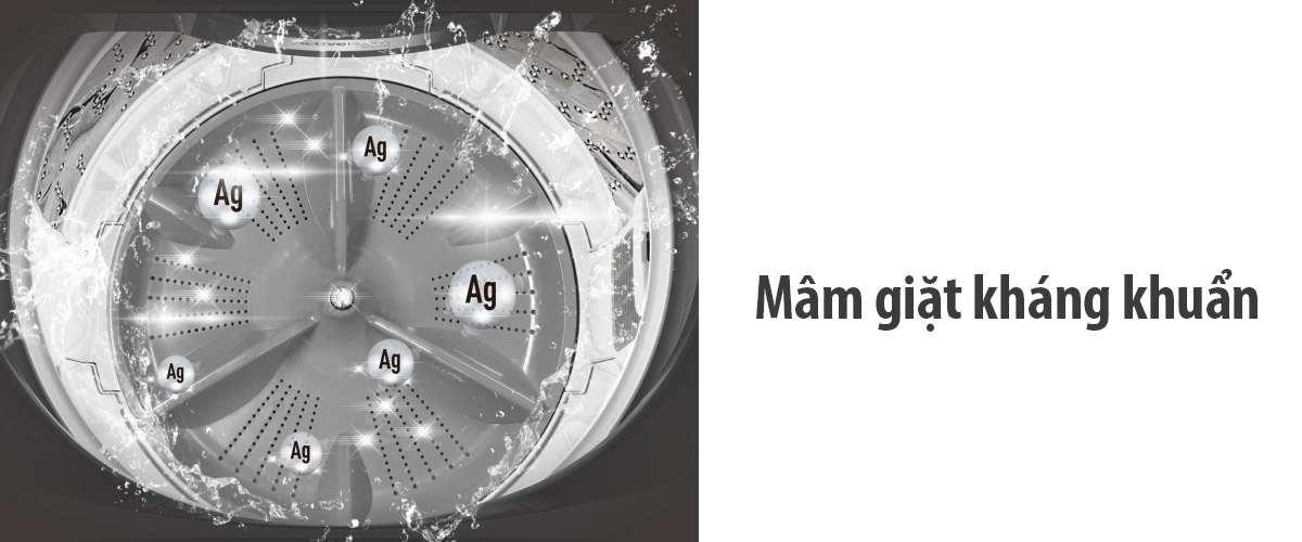 Máy giặt Panasonic giá rẻ NA-F10S10BRV sử dụng mâm giặt với các tinh thể ion bạc mang lại hiệu quả kháng khuẩn và chống nấm mốc cho mâm giặt và hệ thống lọc xơ vải cùng khả năng loại bỏ cặn bột giặt.