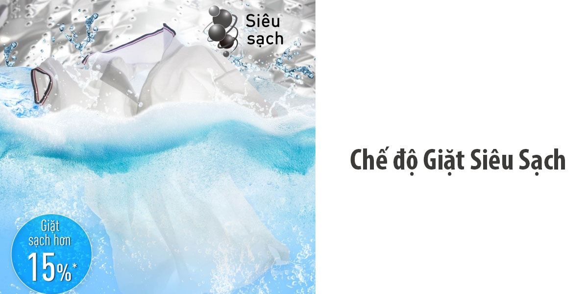 Giặt sạch hơn 15% với chế độ giặt siêu sạch