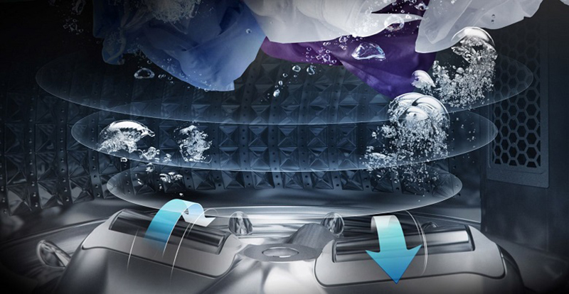 Công nghệ Wobble với mâm giặt đặc biệt tạo nên những luồng nước đa chiều, luân chuyển mạnh mẽ quần áo theo chiều thẳng đứng giúp giặt sạch quần áo một cách nhẹ nhàng và không còn tình trạng xoắn rối sau khi giặt. Nhờ đó quần áo được nâng niu và bảo vệ suốt thời gian dài.