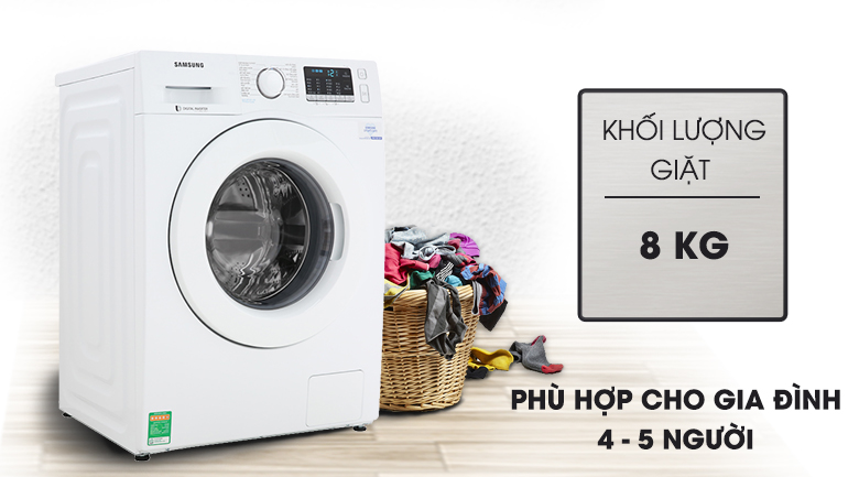 Đi cùng khối lượng giặt 8 kg, bạn có thể lựa chọn máy cho gia đình có từ 4 – 5 thành viên.