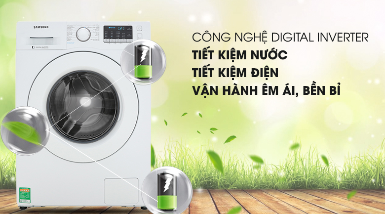 Máy giặt Samsung WW80J52G0KW/SV với công nghệ Digital Inverter bên cạnh việc vận hành êm ái, bền bỉ thì nó còn tiết kiệm điện năng trong lúc vận hành, giúp bạn không còn lo lắng quá nhiều về chi phí điện hàng tháng khi sử dụng máy giặt.