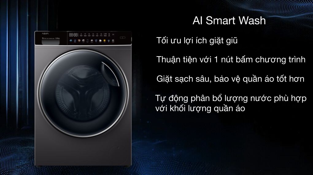 – Máy được trang bị 10 chương trình hoạt động như: giặt AI, giặt đồ hỗn hợp, giặt diệt khuẩn,… Trong đó chương trình giặt AI giúp máy xác định được khối lượng đồ đang giặt từ đó phân bổ nước giặt hợp lý, giúp quần áo sạch sâu và tối ưu chi phí giặt giũ.