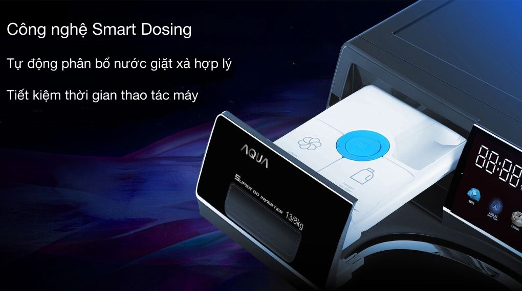 – Công nghệ Smart Dosing tự động cân chỉnh lượng nước giặt/xả phù hợp với khối lượng quần áo trong lồng giặt mà không lo bị nhiều nước giặt quá hay bị ít quá không đủ làm sạch.