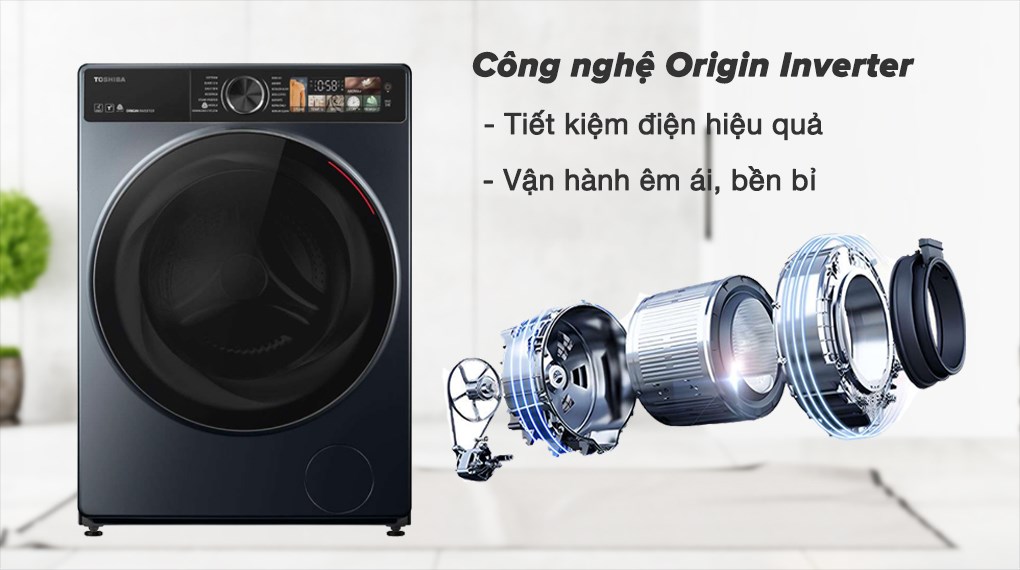 – Công nghệ Origin Inverter: Sử dụng động cơ không chổi than, giúp máy giặt vận hành êm ái và tiết kiệm năng lượng tiêu thụ, giúp tối ưu chi phí sinh hoạt cho gia đình bạn.