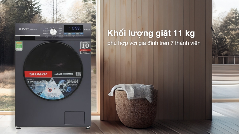– Với khối lượng giặt 11 kg, máy phù hợp cho gia đình trên 7 người hoặc những hộ có nhu cầu giặt khối lượng lớn thường xuyên như chăn mền, quần áo dày, đồ thể thao,…