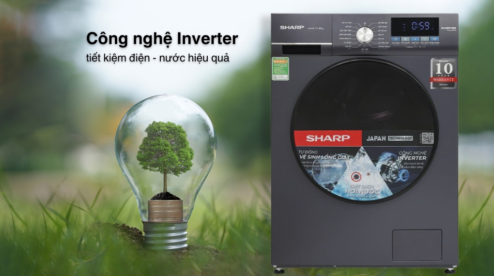 – Máy sử dụng công nghệ Inverter giúp kiểm soát hiệu quả tốc độ động cơ, giảm rung lắc và vận hành êm ái. Việc tiết kiệm điện năng đáng kể trong quá trình sử dụng không chỉ giúp giảm hóa đơn hàng tháng mà còn nâng cao tuổi thọ máy.