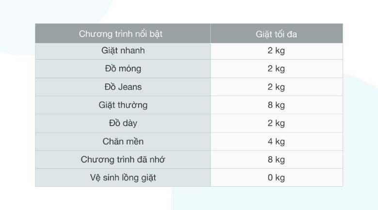 Đáp ứng nhu cầu giặt giũ của gia đình với 8 chương trình giặt được tích hợp sẵn