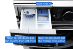 Máy giặt Toshiba Inverter 9.5 kg TW-BH105M4V SK nổi bật với tông màu đen đẳng cấp, kết hợp cùng đường nét góc cạnh tinh tế sẽ mang đến vẻ đẹp sang trọng cho không gian đặt máy của gia đình.