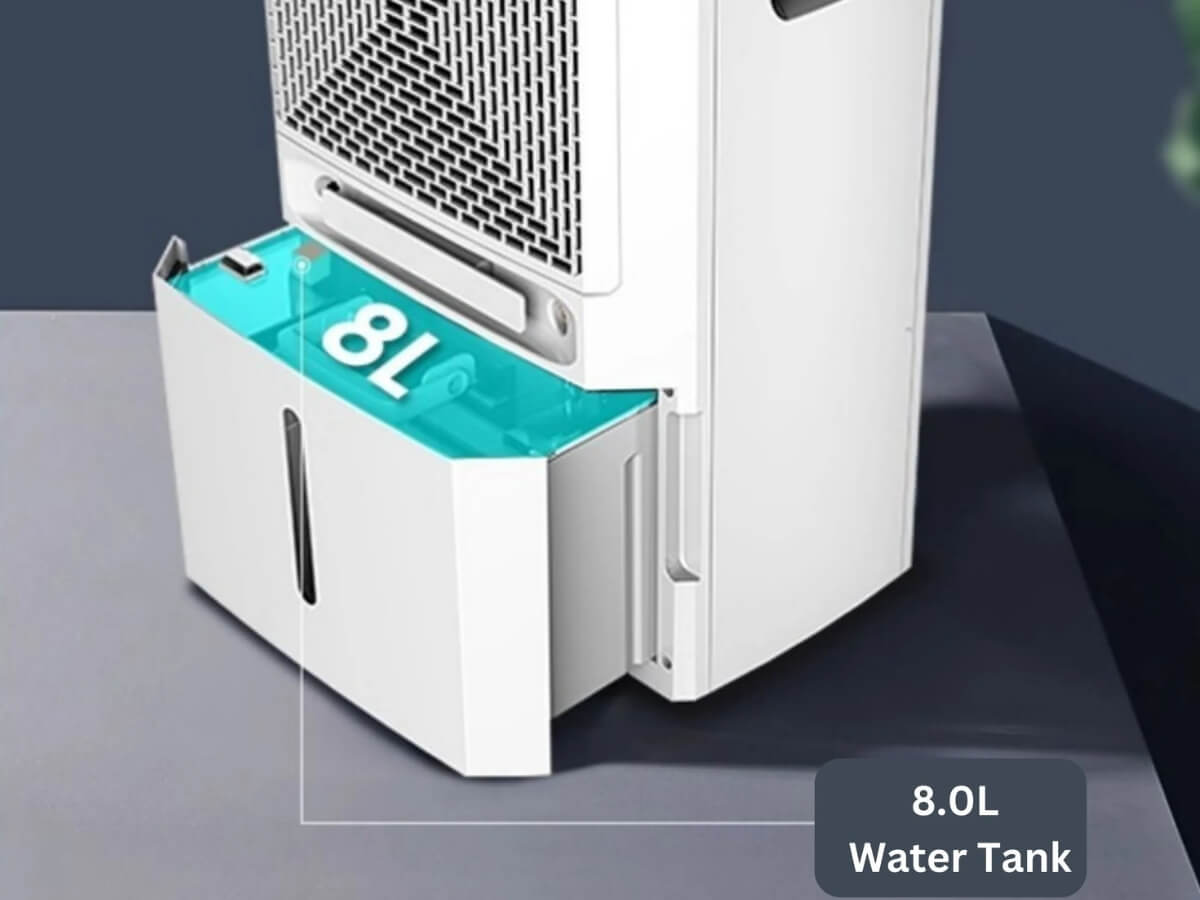 Bình chứa nước ngưng của máy hút ẩm Steiger STG-855BW có dung tích đến 8 lít, có thể sử dụng trong nhiều ngày tùy theo mức độ sử dụng máy cũng như độ ẩm trong phòng. Dung tích bình chứa lớn giúp bạn tiết kiệm thời gian và công sức vì không cần phải đổ nước thường xuyên.