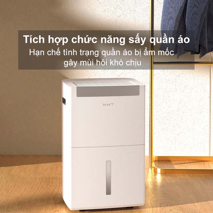 Được trang bị công suất hoạt động mạnh mẽ 850W đem tới khả năng hút ẩm lên đến 60L mỗi ngày với điều kiện 30°C, 80%RH đem lại không khí khô ráo và thoáng mát. Đồng thời, máy hút ẩm Xiaomi New Widetech 60L còn được trang bị thêm tính năng sấy khô quần áo, đây là một trong những tính năng nổi bật được nhiều người tiêu dùng quan tâm. Đặc biệt, đối với kiểu thời tiết ẩm ướt, mưa nhiều thì máy hút ẩm này chính là giải pháp hoàn hảo. Không chỉ hút ẩm, loại bỏ mùi hôi, khử khuẩn mà còn làm khô quần áo một cách hiệu quả.