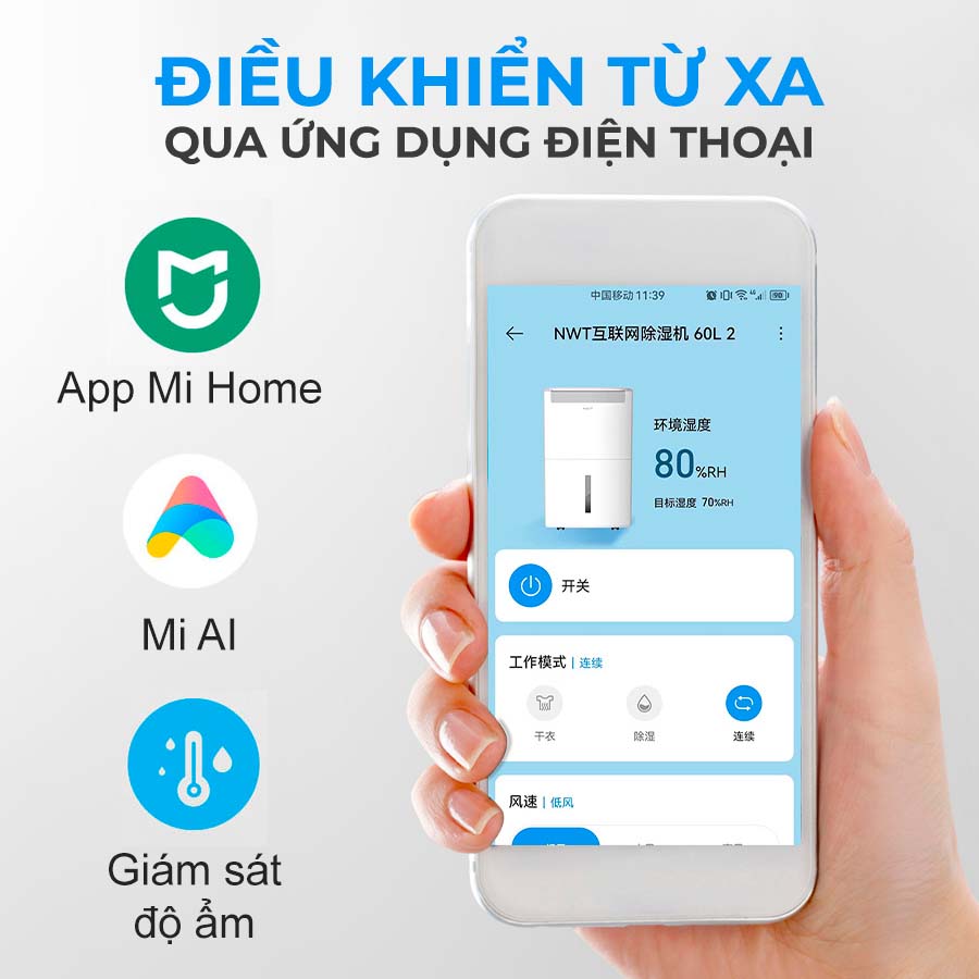 Người dùng có thể tích hợp kết nối máy hút ẩm với ứng dụng Mihome thông qua thiết bị điện thoại thông minh. Để tận dụng tối đa các tính năng có trên máy hút ẩm New Widetech WDH08E60FPW 60L như điều khiển máy từ xa, điều chỉnh độ ẩm, lên lịch hoạt động cho thiết bị,… giúp bạn có thể sử dụng linh hoạt trong mọi tình huống.