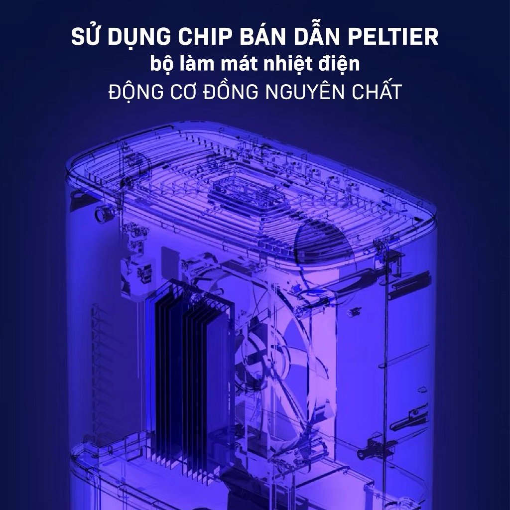 Dòng máy hút ẩm sử dụng chip bán dẫn Peltier – bộ làm mát nhiệt điện có độ ồn cực kì thấp, không làm ảnh hưởng tới giấc ngủ. Công suất hút ẩm 1.080ml/ngày – công suất hút ẩm thấp hơn dùng máy nén (Block) nên siêu tiết kiệm điện, phù hợp hút ẩm cho không gian nhỏ như phòng ăn, phòng ngủ, phòng tắm, vệ sinh, gara, trên xe ô tô, tủ quần áo, tủ giầy…