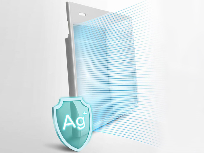 Bộ lọc kháng khuẩn ion bạc được tích hợp trong máy có tác dụng ngăn chặn và ức chế các mầm bệnh, vi khuẩn, nấm mốc,… giúp mang lại bầu không khí trong lành, tươi mát và an toàn cho sức khỏe.