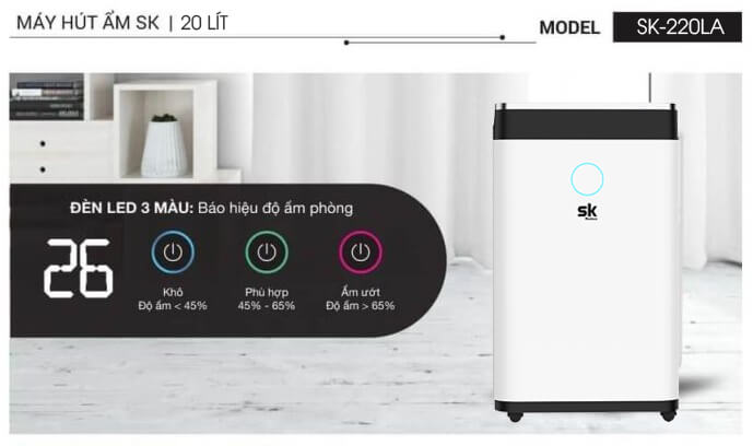 Máy hút ẩm SK Sumikura 20 lít SK-220LA là sản phẩm cực kỳ hữu dụng cho mùa mưa nồm ẩm ướt. Không chỉ hút ẩm hiệu quả, SK-220LA còn giúp lọc không khí giúp loại bỏ bụi bẩn, vi khuẩn, ẩm mốc góp phần đặc lực đảm bảo sức khỏe của cả gia đình.
