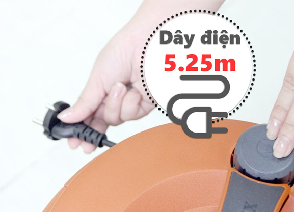 Với dây điện dài 5.25m, bạn có thể hút bụi ở nhiều nơi một cách thoải mái mà không lo tới ổ cắm điện. Bạn cũng dễ dàng thu dây lại chỉ với một thao tác bấm đơn giản.