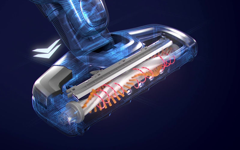 Công nghệ BrushRollClean gỡ rối tóc rụng và xơ vải bám trên đầu hút dễ dàng.