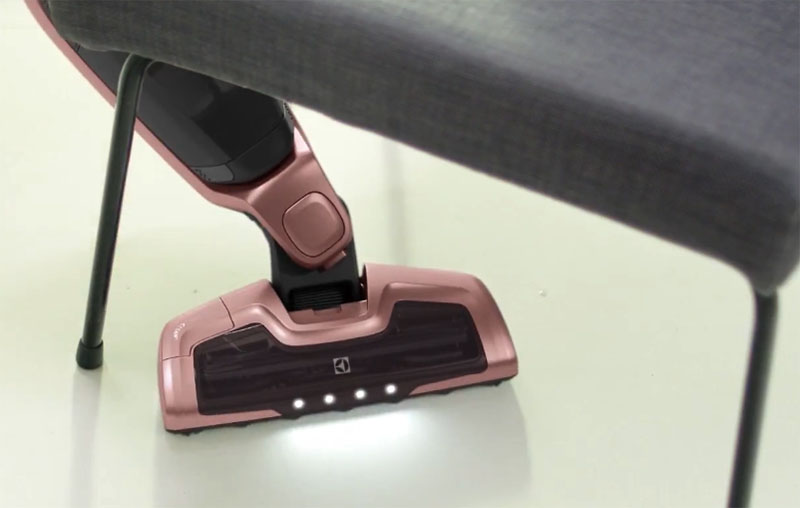 Đầu hút sàn có khả năng xoay 180 độ, có dàn đèn LED cung cấp đủ ánh sáng cho bạn dễ dàng quan sát, hút sạch bụi ở những khu vực tối, hẹp