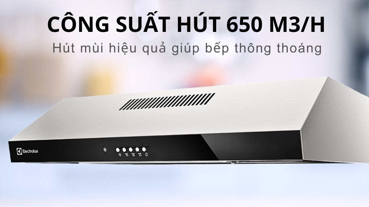 Máy hút mùi Electrolux ERF726SBA sở hữu thiết kế tối giản nhưng vẫn không kém phần nổi bật nhờ vào vẻ ngoài bóng đẹp thẩm mỹ đem tới sự sang trọng cho khu vực bếp. Khả năng hút mùi của máy cao ở mức 650 m3/h giúp loại bỏ triệt để các loại mùi phát sinh ra trong suốt quá trình nấu nướng.