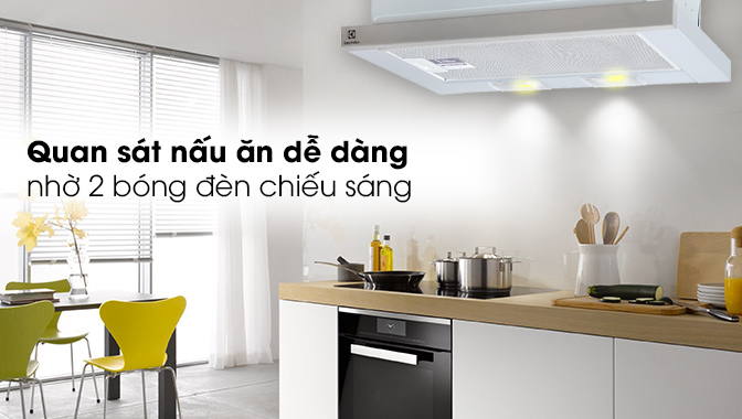 Để tối ưu ánh sáng cho gian bếp, máy hút mùi Electrolux LFP316S được trang bị hệ thống đèn LED ở thân máy. Khi bếp bị tối sẽ gây cản trở quá trình nấu nướng, món ăn có thể bị cháy hoặc hỏng. Nhưng với đèn LED sáng rõ thì người nấu có thể dễ dàng quan sát và tập trung hoàn thành bữa ăn ngon cho gia đình.