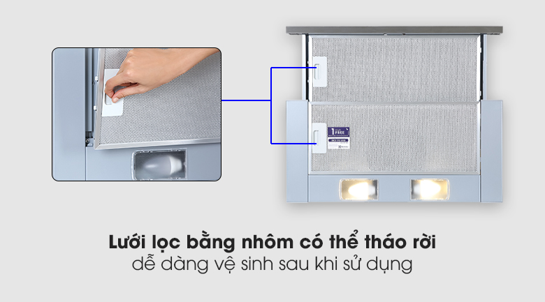 Nhằm đảm bảo Máy hút mùi âm tủ Electrolux LFP316S hoạt động ổn định và không bị tắc nghẽn. Với nhiều tầng lưới nhôm giúp che chắn tối đa các hạt dầu mỡ và chất rắn có trong không khí để bảo vệ máy.
