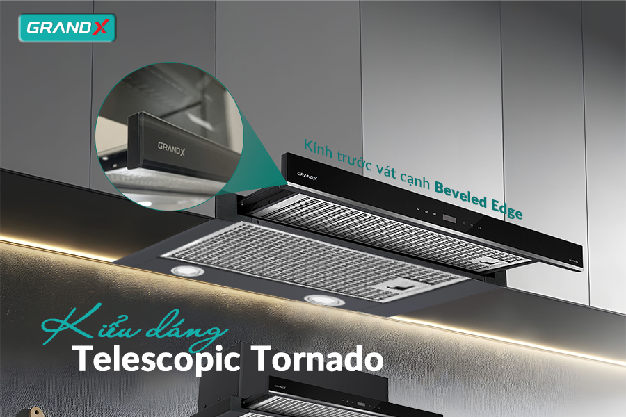 Hút mùi GX H70F58B sở hữu kiểu dáng Telescopic Tornado gọn gàng, linh hoạt lắp đặt trong nhiều không gian bếp khác nhau – từ căn hộ hiện đại đến nhà phố truyền thống. Sản phẩm được hoàn thiện với chất liệu cao cấp, đảm bảo độ bền và tính thẩm mỹ lâu dài: