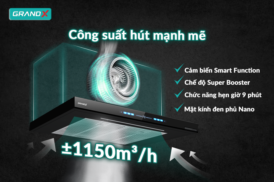 Cho hiệu suất hút mùi vượt trội 1.150 m3/h