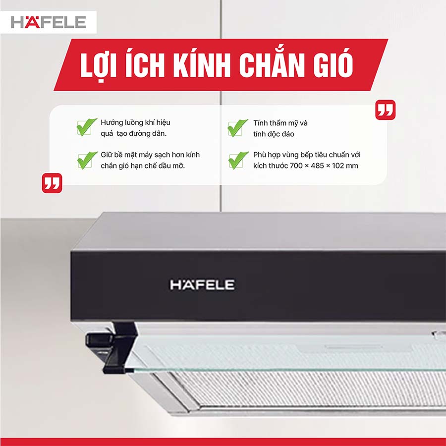 Với sức mạnh này, Hafele HC-H7031BB trở thành giải pháp lý tưởng cho cả những gian bếp thường xuyên nấu nướng, đảm bảo bầu không khí luôn trong lành, dễ chịu và sạch thoáng.