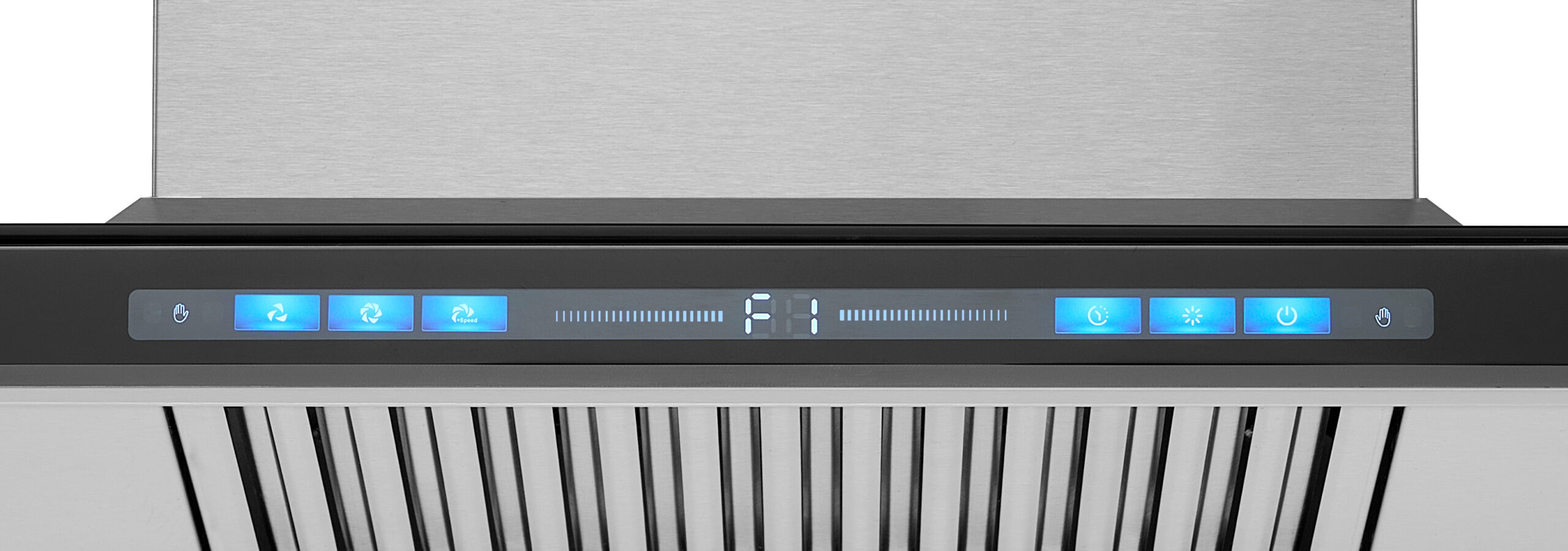Bảng điều khiển cảm ứng chạm với công nghệ cảm điện dung và đèn hiển thị Led với các biểu tượng trực quan màu sắc hài hòa vừa giúp cho việc thao tác điều khiển máy được chuẩn xác và không nhàm chán như các loại hút mùi với đèn Led truyền thống trên thị trường.
