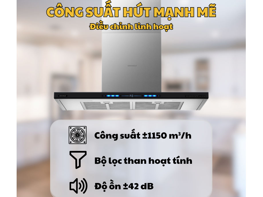 Công suất hút mạnh mẽ, loại bỏ khói bụi và mùi hôi hiệu quả