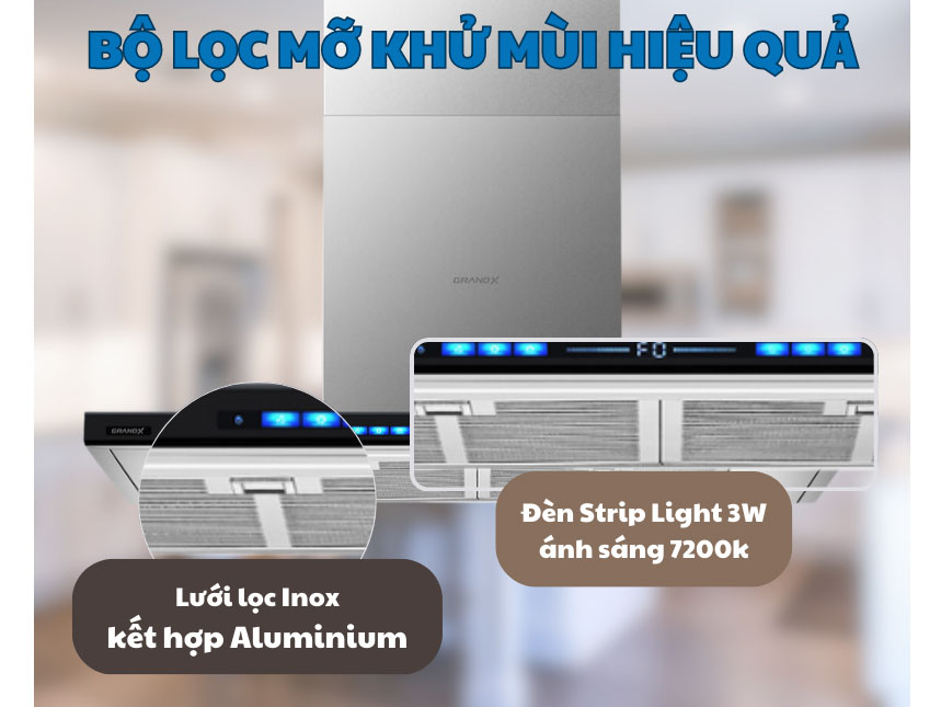 Ánh sáng LED trên máy hút mùi GrandX GX H70T78B có tông màu tự nhiên, không gây chói mắt cho người sử dụng khi nấu nướng. Điều này tạo cảm giác thoải mái, dễ chịu và an toàn cho người dùng.