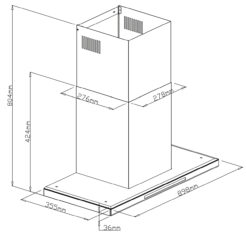 Kích thước của máy hút mùi GrandX GX H90T78G là R900 x S360 x C(424-804) mm. Sản phẩm này được GrandX sản xuất và nhập khẩu nguyên chiếc từ Malaysia.