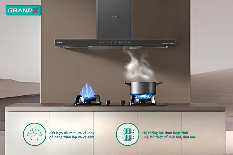 Với chất lượng bền bỉ, chịu lực và chịu nhiệt tốt, cùng với công suất hút mạnh mẽ và hiệu quả, máy hút mùi GrandX GX H70C69G có thể xử lý tốt mọi loại khói và mùi trong không gian bếp. Dù không gian bếp lớn hay nhỏ, đóng kín hay mở ra, máy vẫn đảm bảo rằng môi trường nấu nướng luôn được duy trì sạch sẽ và thoải mái cho người dùng. Điều này làm cho máy hút mùi áp tường chữ T màu xám Titan 70cm GrandX GX H70C69G trở thành một lựa chọn lý tưởng cho mọi gia đình và không gian bếp.