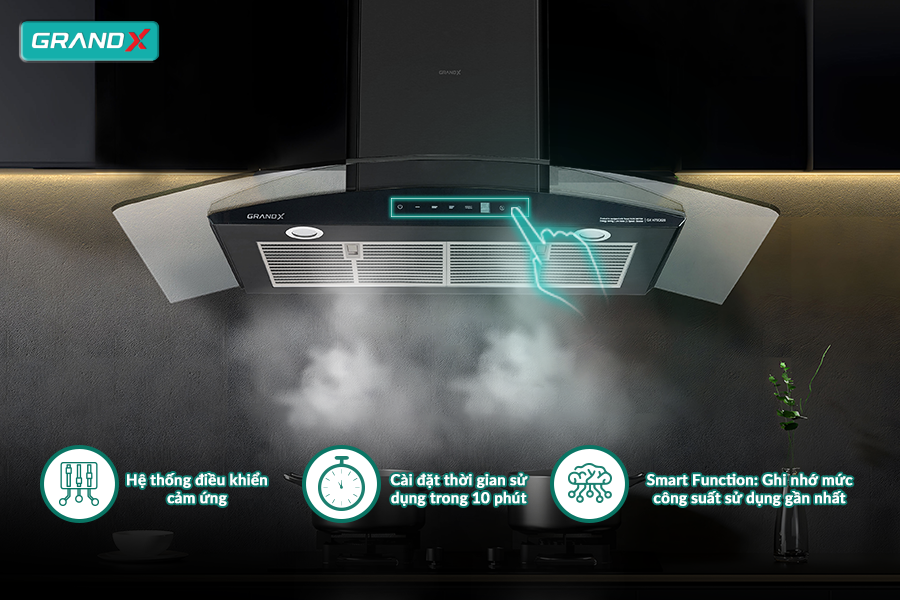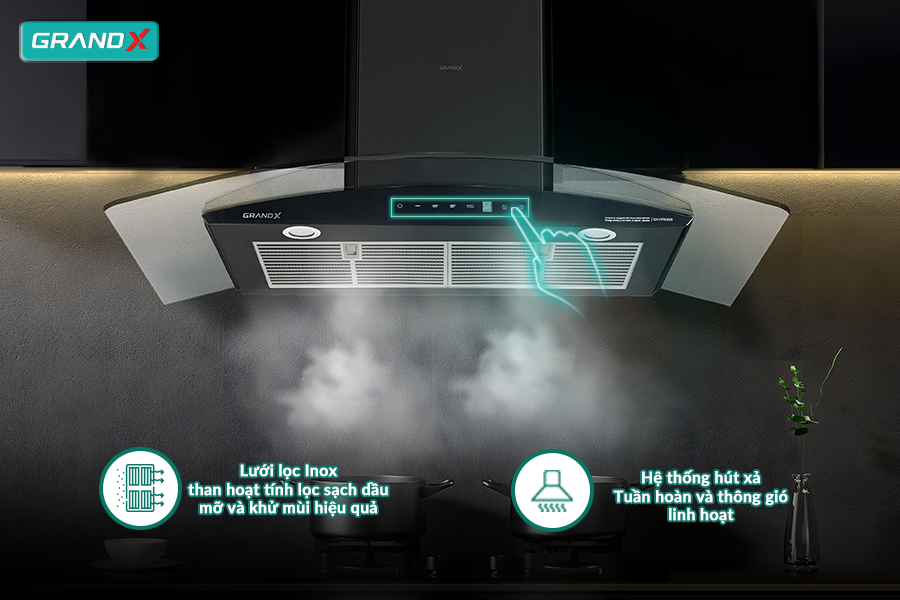 Máy hút mùi áp tường kính cong màu đen 90cm GrandX GX H90C62B không chỉ là một thiết bị thông thường mà còn là điểm nhấn tinh tế trong không gian bếp của bạn. Bảng điều khiển cảm ứng kỹ thuật số Digital Smart với 5 tốc độ hút linh hoạt cùng 1 mức công suất hút tăng cường Super Booster, việc điều chỉnh mức độ hút trở nên đơn giản và linh hoạt hơn bao giờ hết. Bạn có thể dễ dàng tinh chỉnh công suất hoạt động của máy để phù hợp với mọi nhu cầu nấu nướng và loại bỏ mọi mùi khó chịu, tạo ra một không gian bếp sạch sẽ và thoáng đãng mà không cần phải lo lắng.
