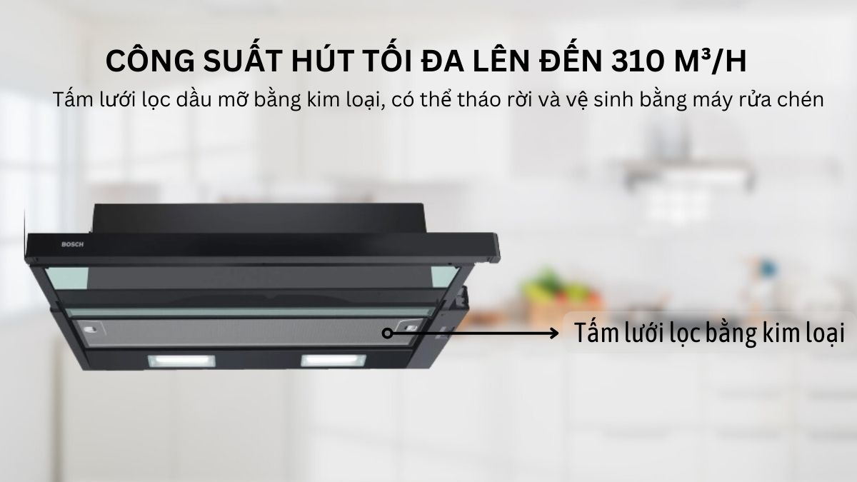 Công suất hút tối đa 310 m³/h – Tấm lưới lọc bằng kim loại