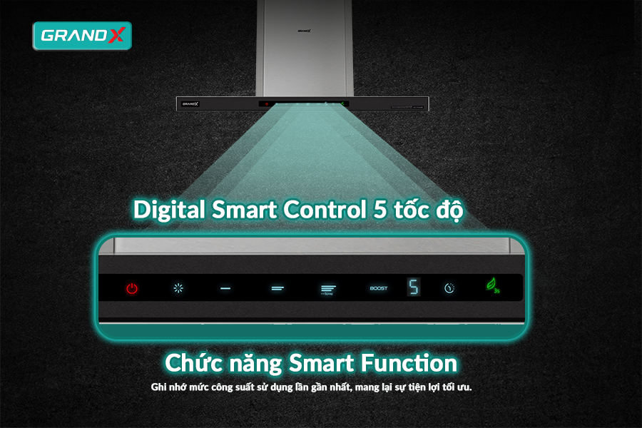 Sản phẩm tích hợp công nghệ tự hút khử Eco Green, giúp không khí nhà bếp luôn trong lành. Điều khiển cảm ứng Digital smart 5 tốc độ và Supper Booster cho phép người dùng dễ dàng điều chỉnh công suất hút theo nhu cầu. Chức năng thông minh Smart function lưu mức công suất hoạt động lần gần nhất, giúp người dùng không cần phải điều chỉnh lại công suất mỗi lần sử dụng.