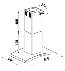 Kích thước của máy hút mùi Kocher Serena CXW-188CRV là R900 x S540 x C(495+495) (mm). Nhập khẩu nguyên chiếc từ Malaysia.