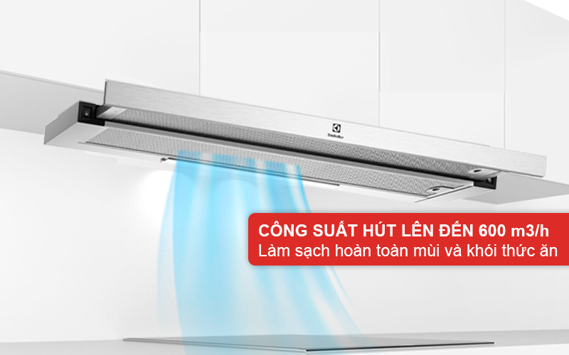 Tại mức độ quạt gió cao nhất, máy hút mùi âm tủ Electrolux ECP9541X đạt được công suất hút tối đa là 600 m3/h. Mang đến khả năng làm sạch tối ưu giúp không khí nhà bếp được làm sạch và luôn thoáng đãng.