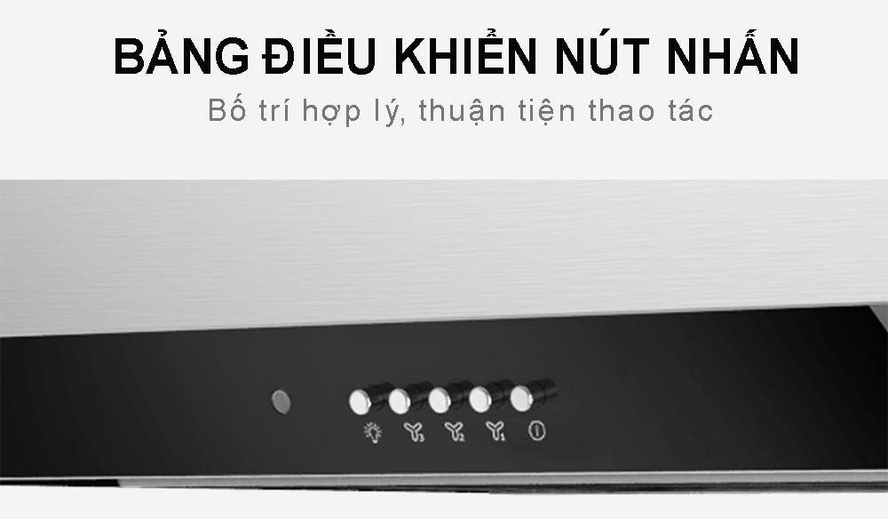 Máy hút mùi Electrolux ERF715SBA trang bị bảng điều khiển nút nhấn hiện đại. Bộ phận điều khiển bố trí phía trước thân máy rất tiện cho việc quan sát và thao tác sử dụng. Sản phẩm tích hợp 3 tốc độ hút cho phép người dùng dễ dàng tùy chỉnh mức tốc độ cho phù hợp với nhu cầu