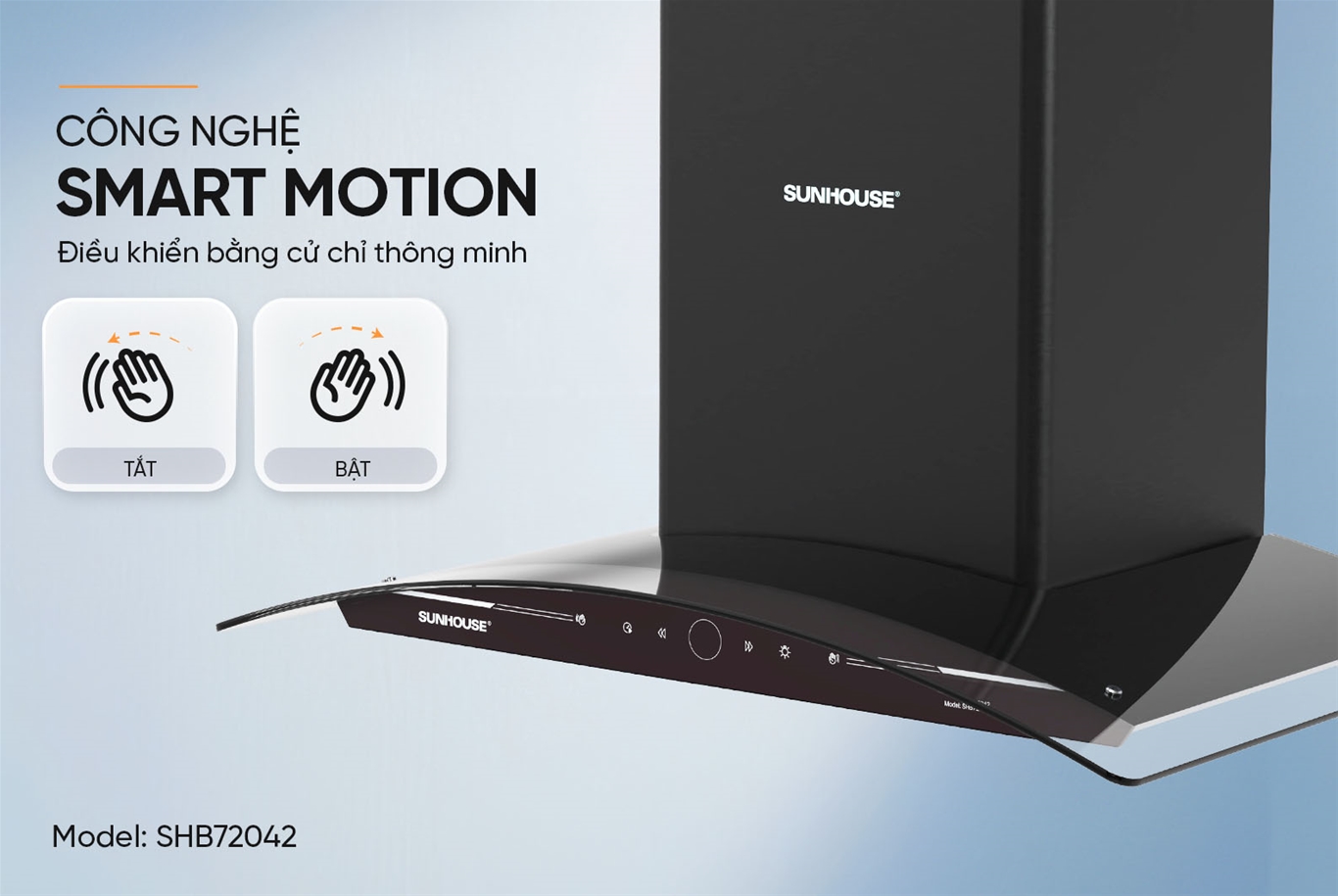Bảng điều khiển cảm ứng của Sunhouse SHB72042 có màn hình rõ nét, dễ sử dụng cùng với tính năng điều khiển bằng cử chỉ thông minh. Người dùng có thể bật tắt máy và điều chỉnh tốc độ hút bằng cách vẫy tay nhẹ nhàng, tiện lợi mà không lo tay dính dầu mỡ làm bẩn bề mặt thiết bị.