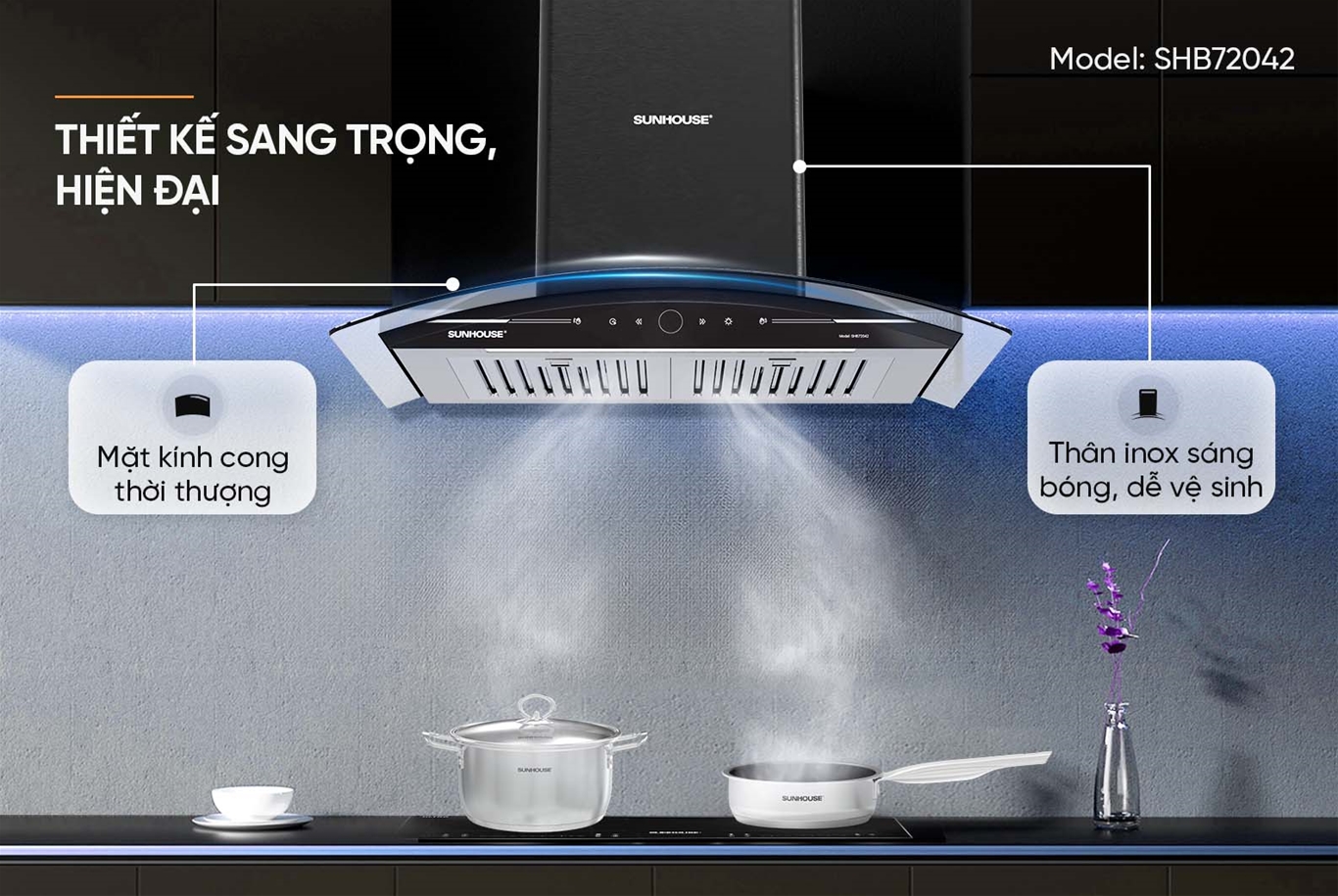 Ưu điểm nổi bật của máy hút mùi kính cong Sunhouse SHB72042