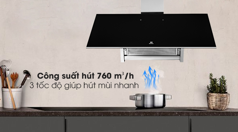 Công suất hút tối đa 760 m3/h hút sạch mùi và khói thức ăn