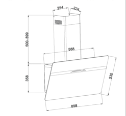 Máy có kích thước 900 x 530 x 358 – 1.257 mm và ống thoát có đường kính 150mm rất dễ dàng lắp đặt trong nhiều không gian bếp khác nhau.