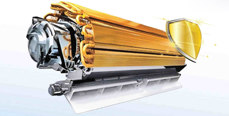 Bo mạch chính của máy được cải tiến để chịu được môi trường nhiệt độ cao đến 55°C và được phủ lớp chống tia UV dày 100μm, giúp chống ăn mòn tốt hơn – đặc biệt phù hợp với vùng khí hậu khắc nghiệt hoặc khu vực gần biển. Dàn trao đổi nhiệt phủ Golden Fin giúp chống lại muối, axit và các yếu tố ăn mòn khác, duy trì hiệu năng ổn định trong thời gian dài.