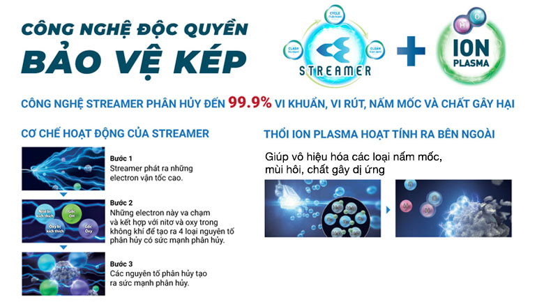 Khả năng lọc khí tối ưu nhờ công nghệ độc quyền bảo vệ kép Streamer và Ion Plasma