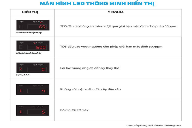 Tính năng tự động báo hiệu nước đầu vào yếu hay mất nước giúp tăng tuổi thọ và độ bền của hệ thống linh kiện và màng lọc