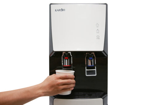 Máy lọc nước Karofi thiết kế sang trọng, màu đen trắng tinh tế, hiện đại, là máy lọc nước tích hợp chức năng làm lạnh, làm nóng tiện dụng