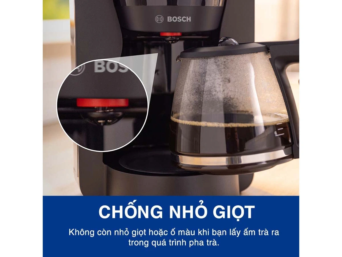 TKA3M133 được trang bị tính năng ngắt nhỏ giọt tự động. Khi bạn rút bình cà phê ra trong khi máy vẫn đang pha, máy sẽ tự động ngừng nhỏ giọt để tránh cà phê chảy ra ngoài. Tính năng này sẽ giữ khu vực pha chế luôn sạch sẽ và gọn gàng, đồng thời thuận tiện khi bạn cần rót một tách cà phê nhanh chóng.